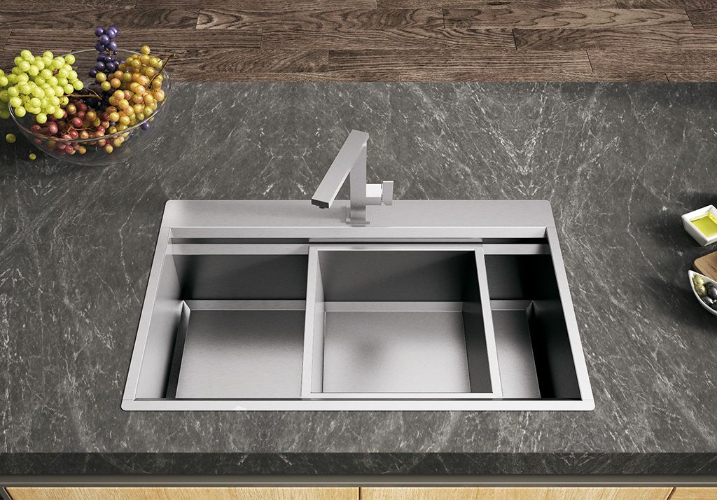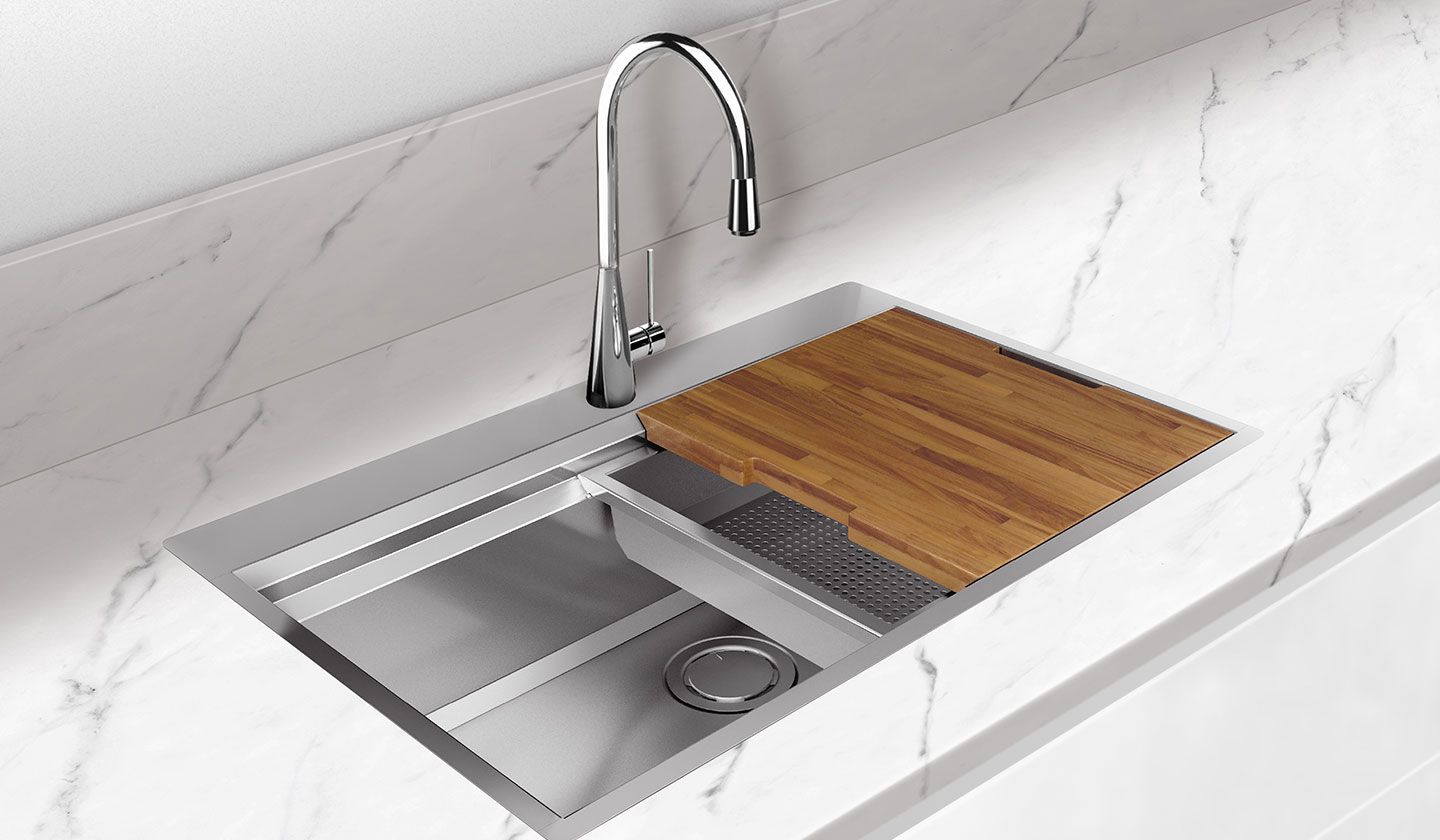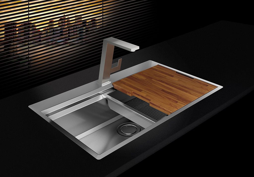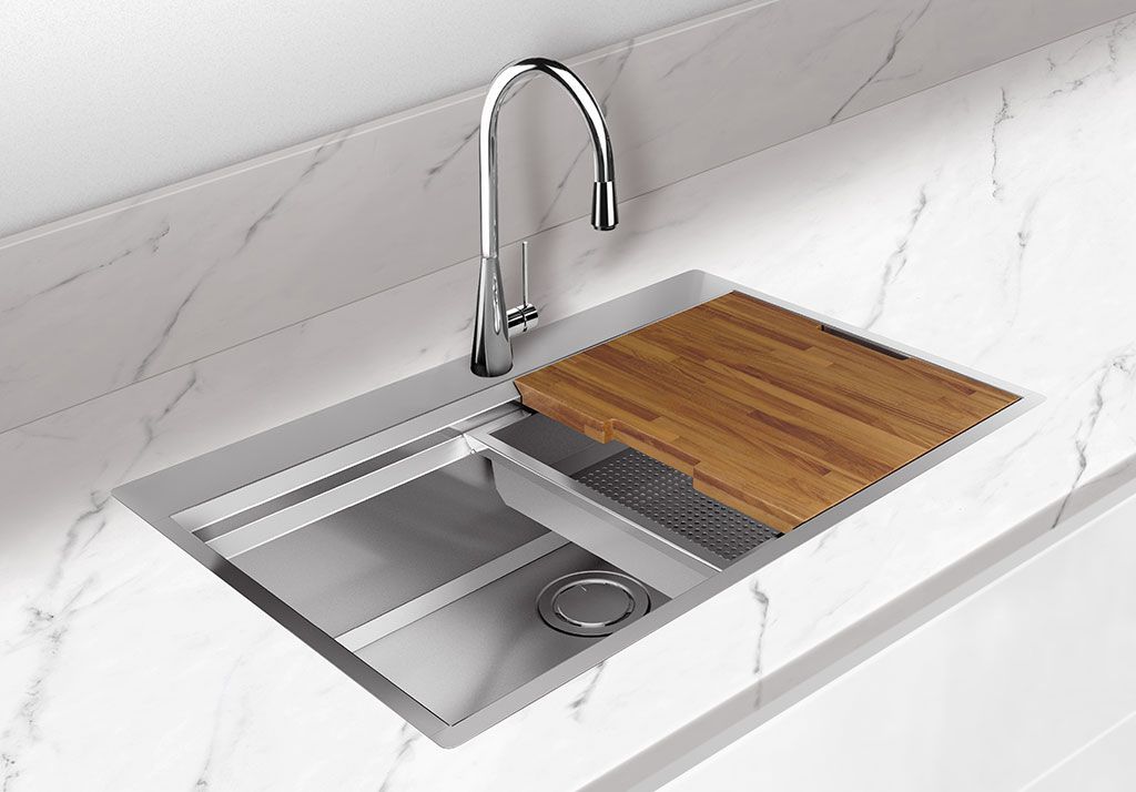 The Frecan Smart BTK Range of Sinks made of 1 mm thick stainless steel is equipped with two levels to facilitate the use of its optional accessories, being hidden from view.